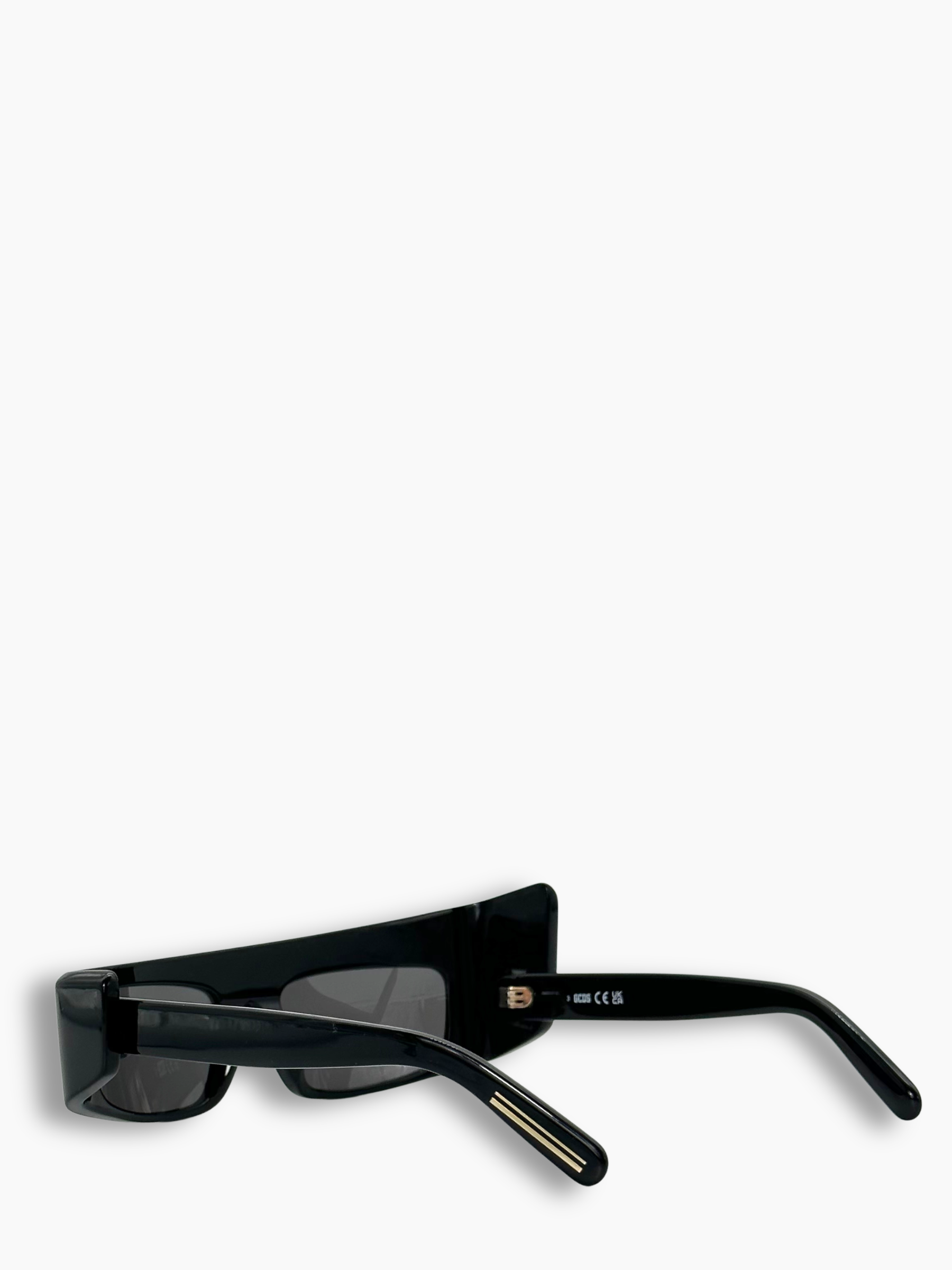 Occhiali da sole neri con montatura rettangolare dal design deciso e moderno. Le linee squadrate e la lente scura donano un’estetica bold e contemporanea, perfetta per completare look urban e minimal. Un modello essenziale ma d’impatto, ideale per chi ama accessori dal carattere forte.