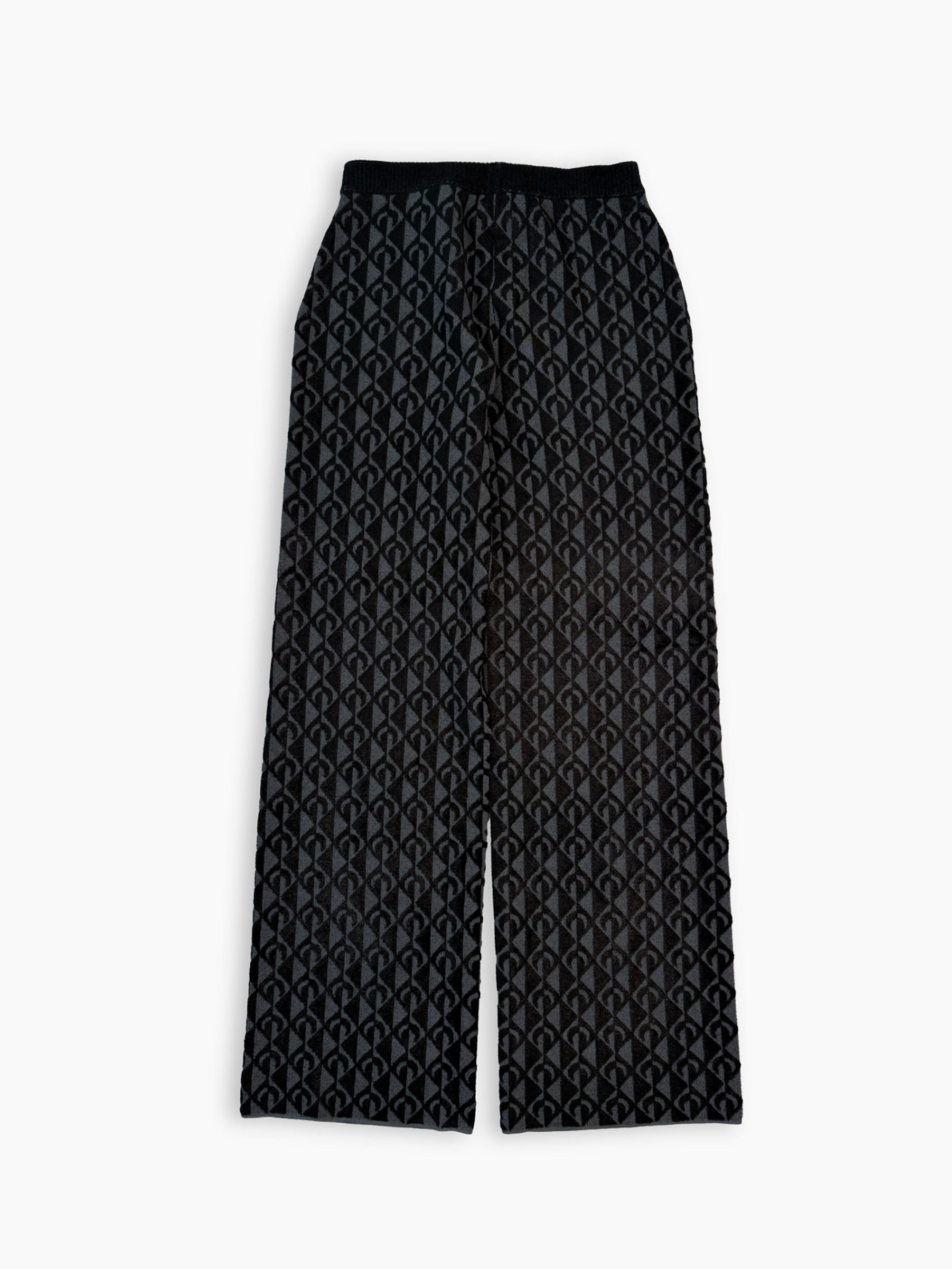 Pantaloni neri con motivo monogram all-over, caratterizzati da una vestibilità morbida e un design moderno e versatile. La vita elasticizzata assicura comfort quotidiano, mentre il pattern geometrico aggiunge un tocco distintivo perfetto per look urbani e minimal.